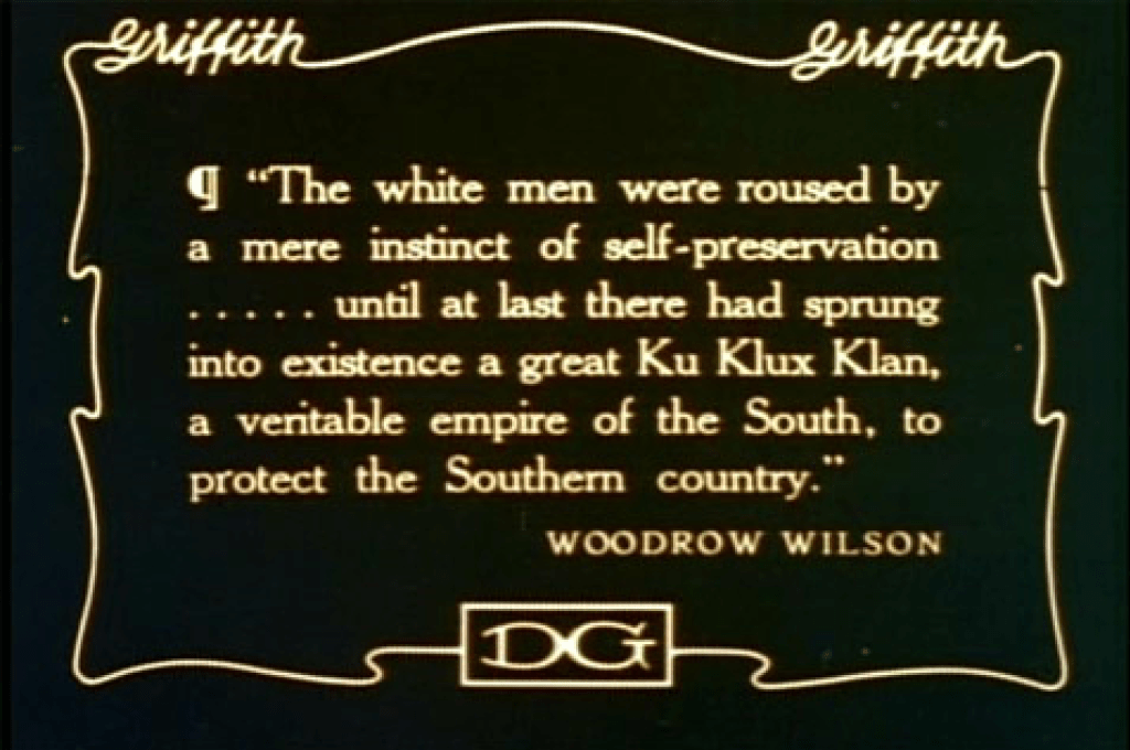 - Racism. Here is Woodrow Wilson from the racist film Birth of a Nation: