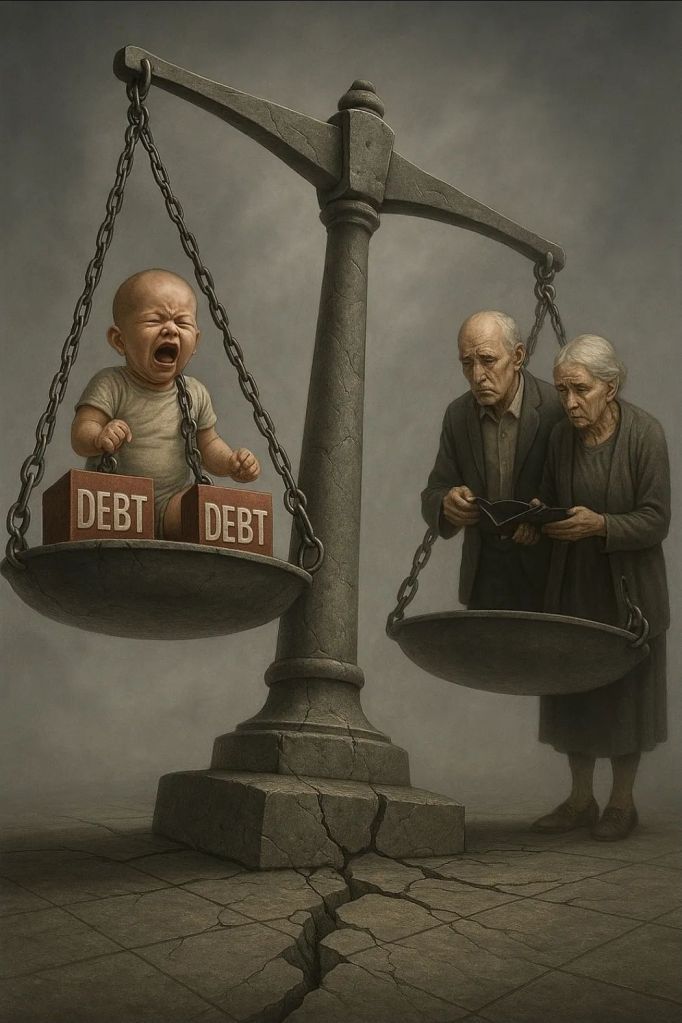 This isn’t just hypocrisy — it’s generational warfare. The average newborn now owes $3,000 before taking their first breath[5].