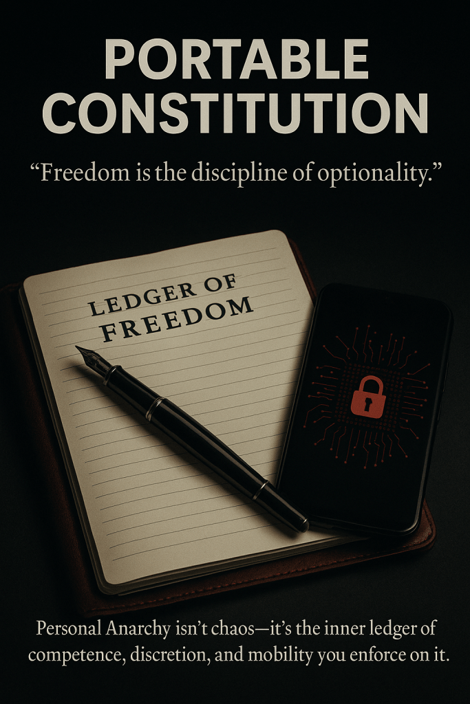 Personal Anarchy (PA) is that order within the individual: competence, discretion, mobility, the small-scale rituals of self-rule.