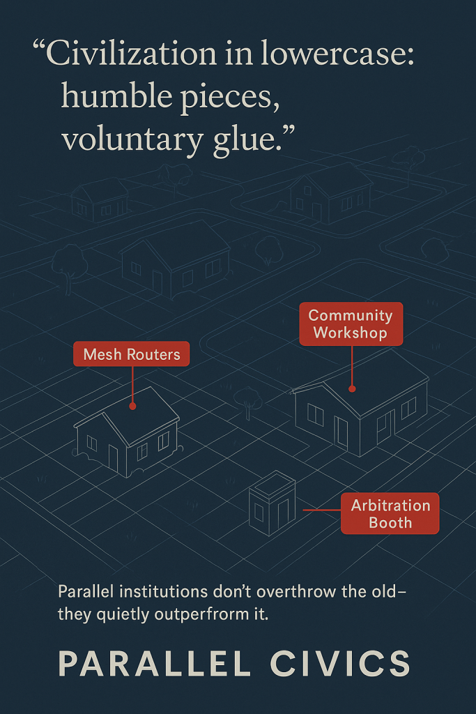 4. Parallel Utilities: Local mesh networks, community credit, co-op infrastructure.