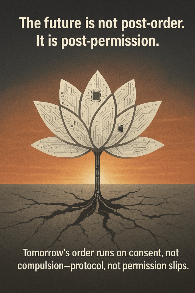 The future is not post-order. It is post-permission.